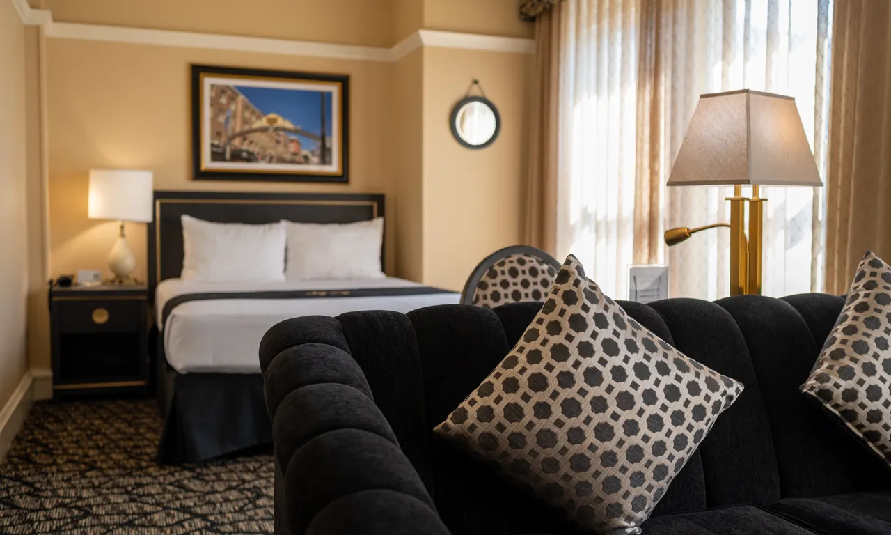 The Gaslamp Plaza Suites is a historical, European style hotel built in 1913. The original architectural aspects are still evident such as original marble on walls and stairways and brass elevator doors. All are preserved meticulously in keeping with our status of being listed in the National Registry of Historic Places. Located in the heart of the historic Gaslamp Quarter, The Gaslamp Plaza Suites is surrounded by shopping, theater, art galleries and more than 100 fantastic restaurants and night clubs.